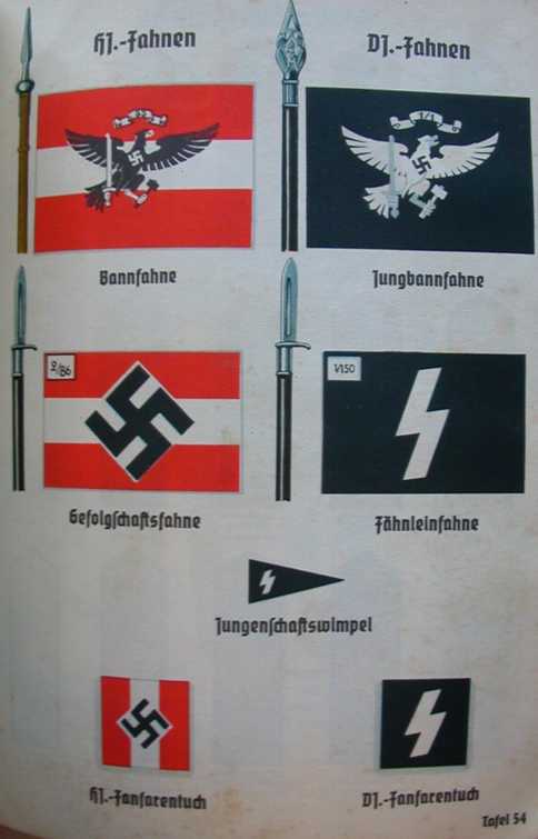 These are banners for various parts of the Hitler Youth organization.