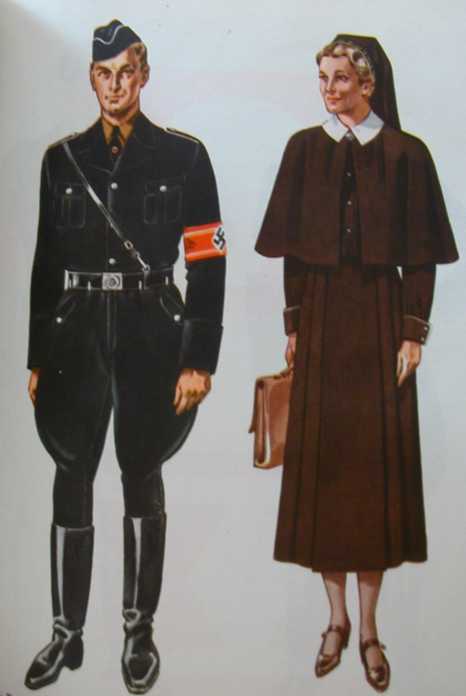 The uniform to the right is for a member of the Nazi organization for nurses.