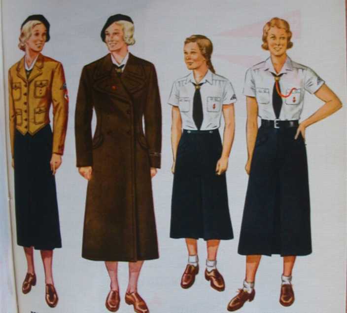 These are all Bund deutscher Mädel (League of German Girls) uniforms. The first is the normal uniform. The second is the coat. The third is the summer uniform for the Jungmädel, the group for girls 10-14 years old. The final one is the summer uniform for a leader of that group.