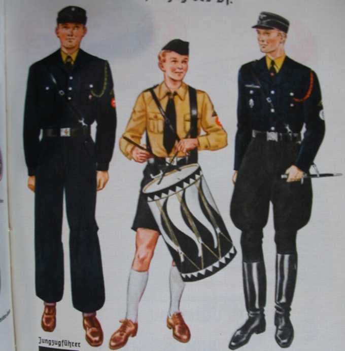 The first is the winter uniform for a local leader of the Jungvolk, the group for boys 10-14 years old. The second is the uniform for the drummer of a Jungvolk unit. The third is the uniform of a Jungbannführer of the Jungvolk.